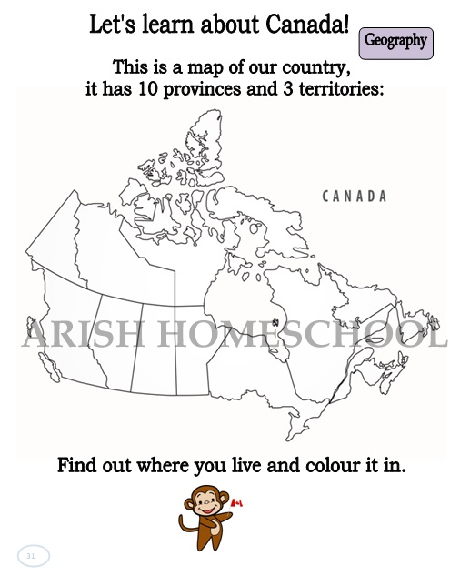 - 1 Workbook that is divided into daily lessons for the month. The lessons include: daily reading, writing, math, science and Canadian geography for every Friday!